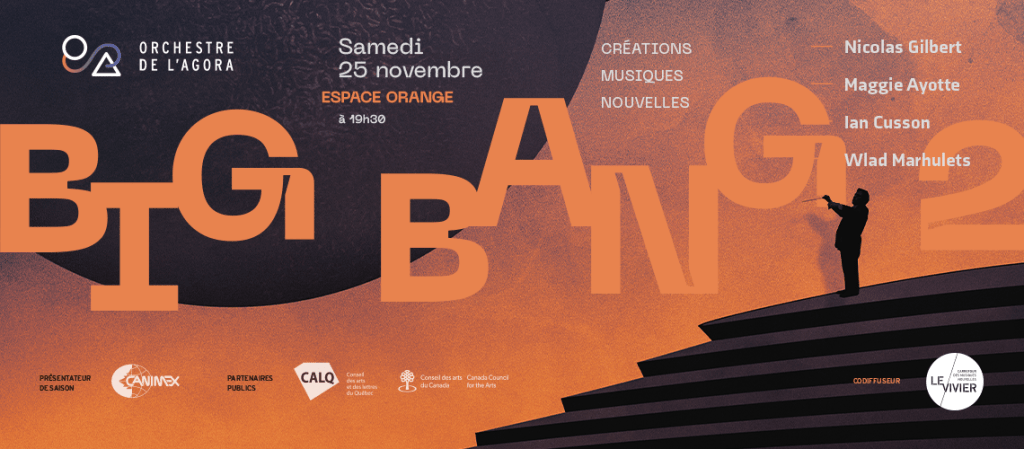 Jeux de pouvoir By ngilbert1 | novembre 3, 2023 Samedi 25 novembre 2023 à 19h30, à l’Espace Orange de l’édifice Wilder, à Montréal, David Brongo et l’Orchestre de l’Agora, sous la direction de Nicolas Ellis, donneront la création de mon nouveau concerto pour percussions, Jeux de pouvoir. Partager : Cliquer pour partager sur X(ouvre dans une nouvelle fenêtre) X Cliquez pour partager sur Facebook(ouvre dans une nouvelle fenêtre) Facebook J’aime chargement… Similaire